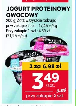 Cena produktu r贸偶ni si臋 w zale偶no艣ci od wybranego sklepu. Niestety nie posiadamy danych o aktualnych promocjach, jednak w艣r贸d archiwalnych ofert Jogurt malina i granat Zott protein kosztuje od 2,99 z艂 do 3,49 z艂.