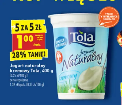 Jogurt naturalny kremowy Tola promocje w sklepach - znajd藕 ofert臋 dla siebie!