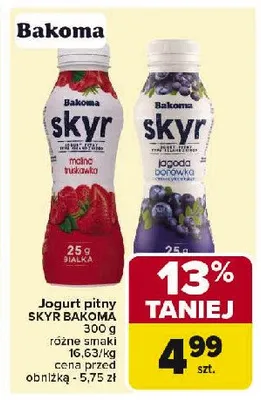 Przegl膮daj oferty promocyjne na produkt Jogurt pitny malina-truskawka Bakoma skyr