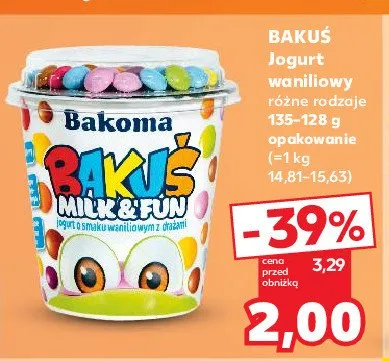 Ile kosztuje Jogurt waniliowy z drażami Bakoma bakuś milk & fun?