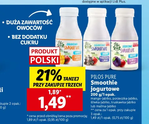 Ile kosztuje Jogurtowe smoothie 艣liwka i jab艂ko Pilos pure?