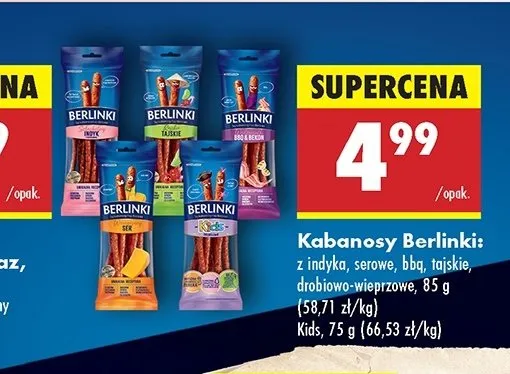 Cena produktu r贸偶ni si臋 w zale偶no艣ci od wybranego sklepu. Niestety nie posiadamy danych o aktualnych promocjach, jednak w艣r贸d archiwalnych ofert Kabanosy drobiowe Morliny berlinki kids kosztuje od 4,99 z艂.