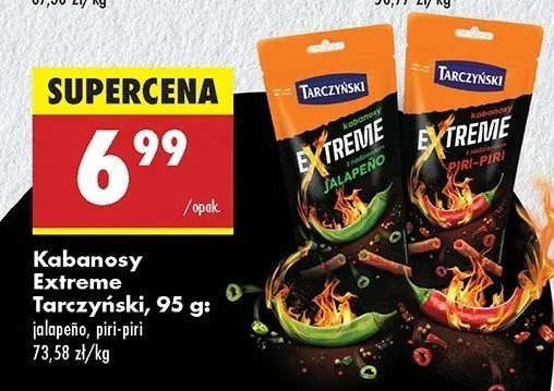 Zastanawiasz si臋, gdzie kupi膰 i ile kosztuje produkt Kabanosy jalapeno? Regularnie sprawdzamy, czy jest promocja na ten produkt w Biedronka, Lidl, Kaufland, Auchan, Netto, Makro i innych sklepach. Aktualnie posiadamy 1 ofert臋 promocyjn膮 na ten produkt. Ceny zaczynaj膮 si臋 od 5,99z艂!
