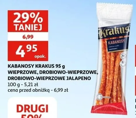 Cena produktu r贸偶ni si臋 w zale偶no艣ci od wybranego sklepu. Niestety nie posiadamy danych o aktualnych promocjach, jednak w艣r贸d archiwalnych ofert Kabanosy jalapeno Krakus animex kosztuje od 4,49 z艂 do 5,49 z艂.
