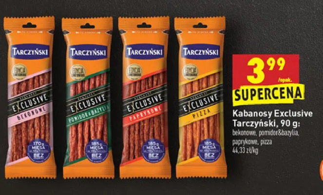 Cena produktu r贸偶ni si臋 w zale偶no艣ci od wybranego sklepu. Niestety nie posiadamy danych o aktualnych promocjach, jednak w艣r贸d archiwalnych ofert Kabanosy paprykowe Tarczy艅ski kabanos exclusive kosztuje od 3,99 z艂.