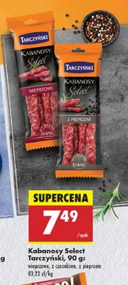Kabanosy z czosnkiem TARCZY艃SKI KABANOS SELECT aktualnie nie wyst臋puje w bazie naszych gazetek promocyjnych. Nie martw si臋! Gdy tylko pojawi si臋 ciekawa promocja na Kabanosy z czosnkiem TARCZY艃SKI KABANOS SELECT, umie艣cimy j膮 na naszej stronie