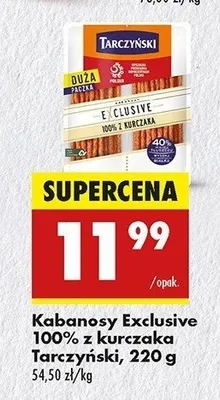 Cena produktu r贸偶ni si臋 w zale偶no艣ci od wybranego sklepu. Niestety nie posiadamy danych o aktualnych promocjach, jednak w艣r贸d archiwalnych ofert Kabanosy z kurczaka Tarczy艅ski exclusive kosztuje od 11,99 z艂.