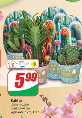 Cena produktu r贸偶ni si臋 w zale偶no艣ci od wybranego sklepu. Niestety nie posiadamy danych o aktualnych promocjach, jednak w艣r贸d archiwalnych ofert Kaktus w don. 6 cm kosztuje od 4,49 z艂 do 5,99 z艂.