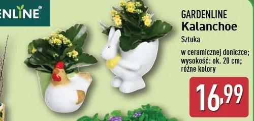 Cena produktu r贸偶ni si臋 w zale偶no艣ci od wybranego sklepu. Niestety nie posiadamy danych o aktualnych promocjach, jednak w艣r贸d archiwalnych ofert Kalanchoe w ceramicznej doniczce 20 cm GARDEN LINE kosztuje od 16,99 z艂.
