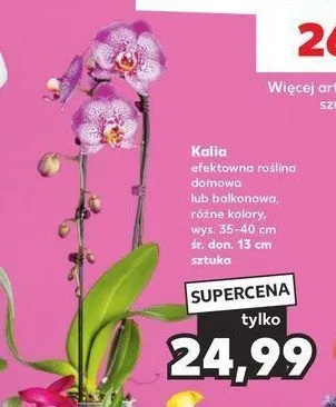 Zastanawiasz si臋, gdzie kupi膰 i ile kosztuje produkt Kalia balkonowa 13 cm? Regularnie sprawdzamy, czy jest promocja na ten produkt w Biedronka, Lidl, Kaufland, Auchan, Netto, Makro i innych sklepach. Aktualnie nie posiadamy ofert promocyjnych na ten produkt.