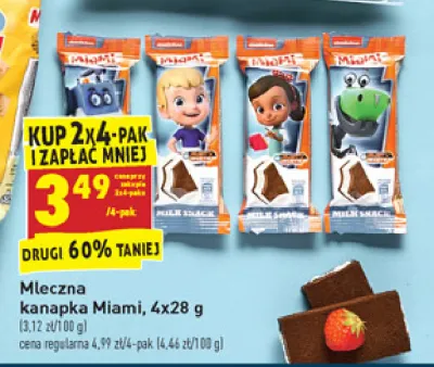 Cena produktu r贸偶ni si臋 w zale偶no艣ci od wybranego sklepu. Niestety nie posiadamy danych o aktualnych promocjach, jednak w艣r贸d archiwalnych ofert Kanapka mleczna Miami sandwich kosztuje od 3,49 z艂.