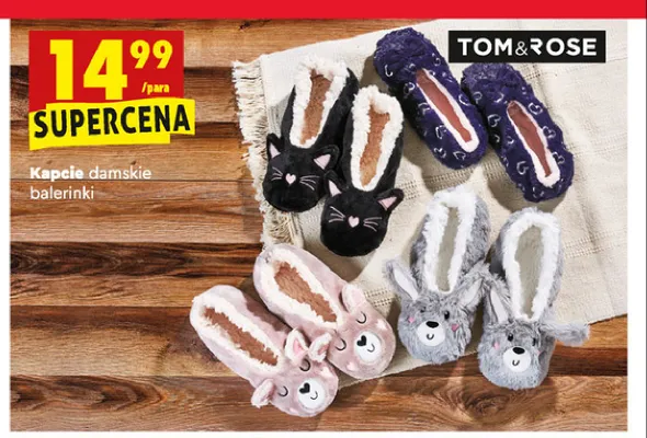 Cena produktu r贸偶ni si臋 w zale偶no艣ci od wybranego sklepu. Niestety nie posiadamy danych o aktualnych promocjach, jednak w艣r贸d archiwalnych ofert Kapcie damskie baleriny 37-41 cm Tom & rose kosztuje od 14,99 z艂.