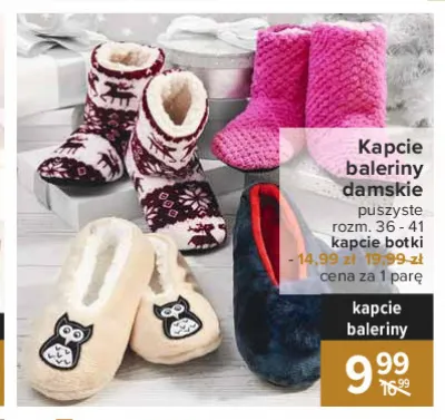 Kapcie damskie baleriny roz. 36-41 aktualnie nie wyst臋puje w bazie naszych gazetek promocyjnych. Nie martw si臋! Gdy tylko pojawi si臋 ciekawa promocja na Kapcie damskie baleriny roz. 36-41, umie艣cimy j膮 na naszej stronie