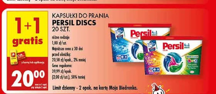 Cena produktu r贸偶ni si臋 w zale偶no艣ci od wybranego sklepu. Produkt Kapsu艂ki do prania 4in1 color deep clean Persil discs mo偶esz kupi膰 w promocji ju偶 od 22,99 z艂 do 39,99 z艂. Najta艅sza oferta, jak膮 mamy w naszej bazie jest z sieci POLOmarket. Kapsu艂ki do prania 4in1 color deep clean Persil discs kosztuje aktualnie 22,99 z艂. Zobacz ofert臋