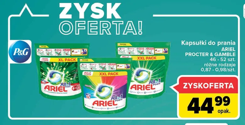 Przegl膮daj oferty promocyjne na produkt Kapsu艂ki do prania extra clean Ariel all in 1