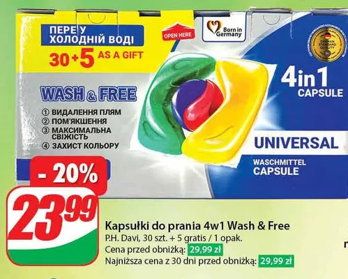 Przegl膮daj oferty promocyjne na produkt Kapsu艂ki do prania uniwersalne Wash & free