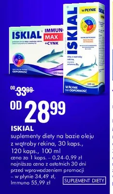 Cena produktu różni się w zależności od wybranego sklepu. Niestety nie posiadamy danych o aktualnych promocjach, jednak wśród archiwalnych ofert Kapsułki do żucia Iskial junior kosztuje od 21,99 zł do 28,99 zł.