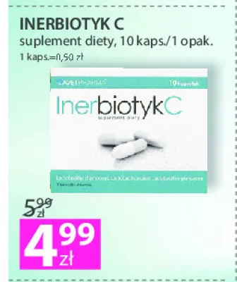 Cena produktu r贸偶ni si臋 w zale偶no艣ci od wybranego sklepu. Niestety nie posiadamy danych o aktualnych promocjach, jednak w艣r贸d archiwalnych ofert Kapsu艂ki Inerbiotykc kosztuje od 4,99 z艂.