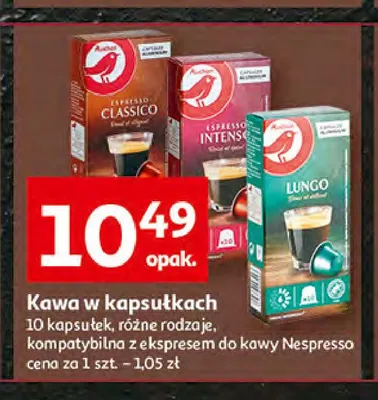 Cena produktu r贸偶ni si臋 w zale偶no艣ci od wybranego sklepu. Niestety nie posiadamy danych o aktualnych promocjach, jednak w艣r贸d archiwalnych ofert Kapsu艂ki lungo Auchan kosztuje od 7,2 z艂 do 10,49 z艂.