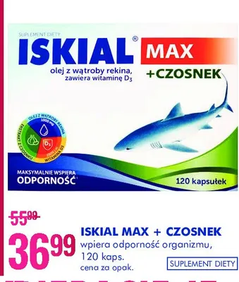 Przegl膮daj podobne oferty promocyjne do Kapsu艂ki olej z w膮troby rekina max+czosnek Iskial!
