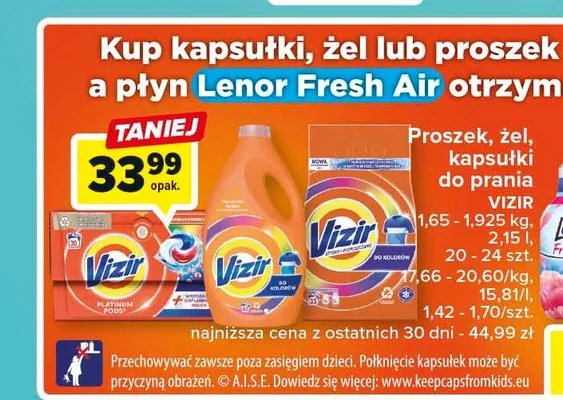 Ile kosztuje Kapsu艂ki wi臋ksza si艂a odplamiania Vizir all in one pods?