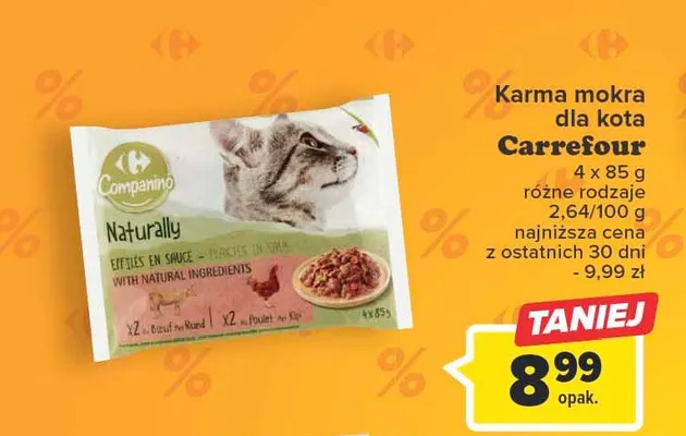 Ile kosztuje Karma dla kota mi臋so w sosie CARREFOUR COMPANINO?