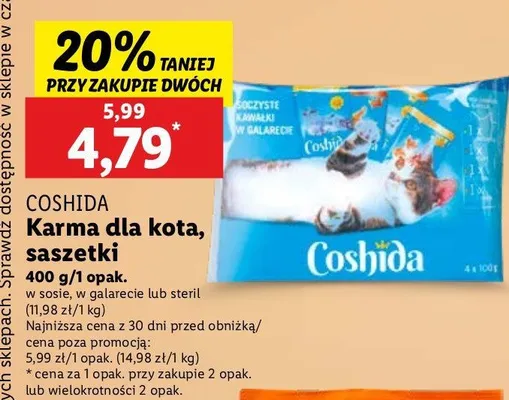 Przegl膮daj podobne oferty promocyjne do Karma dla kota przysmak w galaretce Coshida!