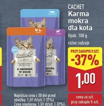 Zastanawiasz si臋, gdzie kupi膰 i ile kosztuje produkt Karma dla kota ryba Cachet? Regularnie sprawdzamy, czy jest promocja na ten produkt w Biedronka, Lidl, Kaufland, Auchan, Netto, Makro i innych sklepach. Aktualnie posiadamy 9 ofert promocyjnych na ten produkt. Ceny zaczynaj膮 si臋 od 9,99z艂!