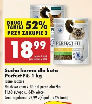 Cena produktu r贸偶ni si臋 w zale偶no艣ci od wybranego sklepu. Niestety nie posiadamy danych o aktualnych promocjach, jednak w艣r贸d archiwalnych ofert Karma dla kota sensitive 1+ Perfect fit kosztuje od 18,99 z艂.
