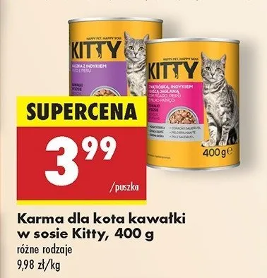 Cena produktu r贸偶ni si臋 w zale偶no艣ci od wybranego sklepu. Niestety nie posiadamy danych o aktualnych promocjach, jednak w艣r贸d archiwalnych ofert Karma dla kota w sosie pomidorowym z kaczk膮 i indykiem Kitty kosztuje od 3,99 z艂.