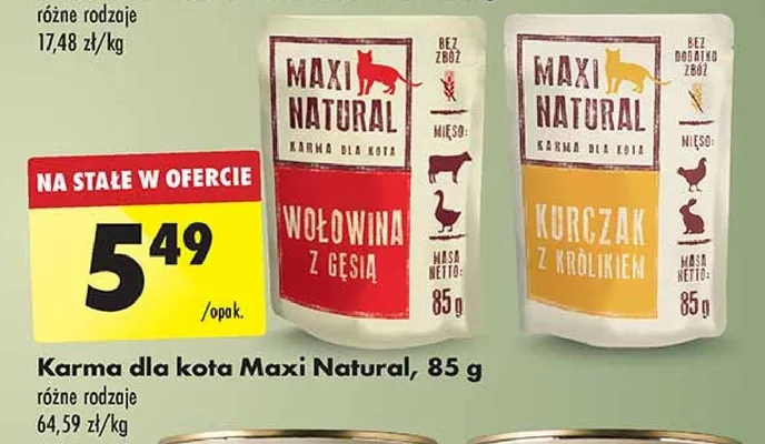 Przegl膮daj podobne oferty promocyjne do Karma dla kota wo艂owina z g臋si膮 Maxi natural!