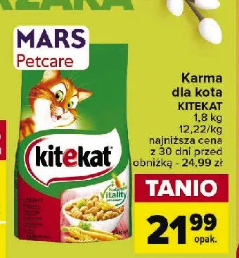 Cena produktu r贸偶ni si臋 w zale偶no艣ci od wybranego sklepu. Niestety nie posiadamy danych o aktualnych promocjach, jednak w艣r贸d archiwalnych ofert Karma dla kota wo艂owina z warzywami Kitekat kosztuje od 11,99 z艂 do 21,99 z艂.