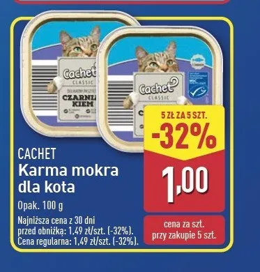 Zastanawiasz si臋, gdzie kupi膰 i ile kosztuje produkt Karma dla kota z czarniakiem Cachet? Regularnie sprawdzamy, czy jest promocja na ten produkt w Biedronka, Lidl, Kaufland, Auchan, Netto, Makro i innych sklepach. Aktualnie posiadamy 5 ofert promocyjnych na ten produkt. Ceny zaczynaj膮 si臋 od z艂!