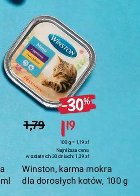 Cena produktu r贸偶ni si臋 w zale偶no艣ci od wybranego sklepu. Niestety nie posiadamy danych o aktualnych promocjach, jednak w艣r贸d archiwalnych ofert Karma dla kota z jagni臋cin膮 i kur膮 Winston kosztuje od 0,99 z艂 do 1,19 z艂.