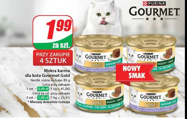 Cena produktu różni się w zależności od wybranego sklepu. Niestety nie posiadamy danych o aktualnych promocjach, jednak wśród archiwalnych ofert Karma dla kota z jagnięciną i zieloną fasolą Purina gourmet gold kosztuje od 1,99 zł do 3,99 zł.