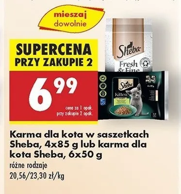 Cena produktu r贸偶ni si臋 w zale偶no艣ci od wybranego sklepu. Niestety nie posiadamy danych o aktualnych promocjach, jednak w艣r贸d archiwalnych ofert Karma dla kota z kurczakiem drobiem indykiem Sheba fresh & fine kosztuje od 5,98 z艂 do 9,99 z艂.