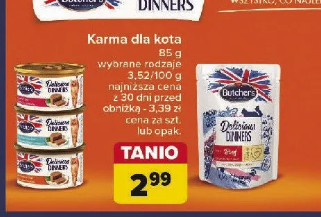 Przegl膮daj podobne oferty promocyjne do Karma dla kota z tu艅czykiem i ryb膮 morsk膮 Butcher's classic delicious dinners!