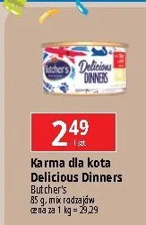 Cena produktu różni się w zależności od wybranego sklepu. Niestety nie posiadamy danych o aktualnych promocjach, jednak wśród archiwalnych ofert Karma dla kota z wołowiną i wątróbką Butcher's classic delicious dinners kosztuje od 1,99 zł do 2,99 zł.