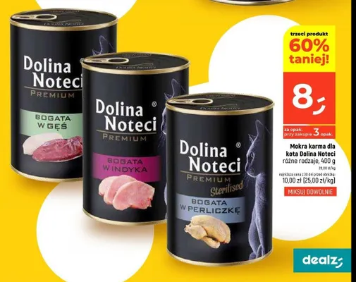 Cena produktu r贸偶ni si臋 w zale偶no艣ci od wybranego sklepu. Niestety nie posiadamy danych o aktualnych promocjach, jednak w艣r贸d archiwalnych ofert Karma dla psa wo艂owina i serca g臋si DOLINA NOTECI SUPERFOOD kosztuje od 8 z艂.