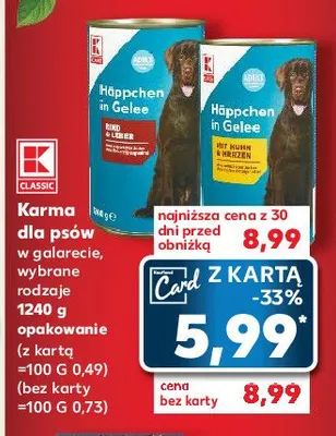 Karma dla psa wo艂owina w galarecie K-classic promocje w sklepach - znajd藕 ofert臋 dla siebie!