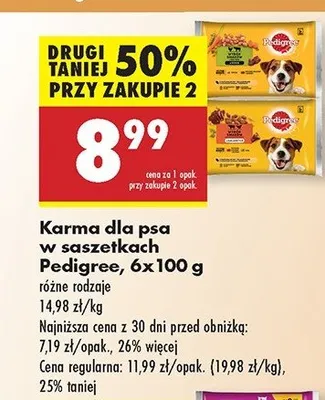Cena produktu r贸偶ni si臋 w zale偶no艣ci od wybranego sklepu. Niestety nie posiadamy danych o aktualnych promocjach, jednak w艣r贸d archiwalnych ofert Karma dla psa wyb贸r smak贸w w sosie Pedigree kosztuje od 8,99 z艂.