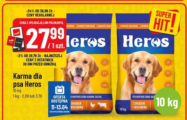 Przegl膮daj oferty promocyjne na produkt Karma dla psa z drobiem i wo艂owin膮 Heros (karmy)