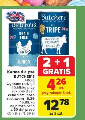 Przegl膮daj podobne oferty promocyjne do Karma dla psa z flakami wo艂owymi Butcher's grain free!