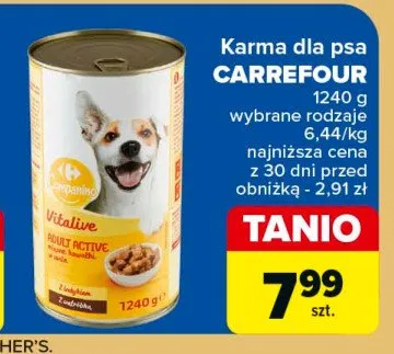 Ile kosztuje Karma dla psa z indykiem i w膮tr贸bk膮 CARREFOUR COMPANINO?
