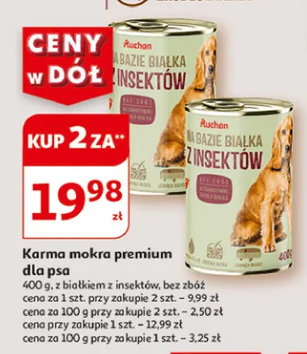 Gdzie można tanio kupić produkt Karma dla psów na bazie białka z insektów Auchan różnorodne (logo czerwone)?