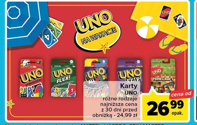 Zastanawiasz si臋, gdzie kupi膰 i ile kosztuje produkt Karty do gry flip Uno? Regularnie sprawdzamy, czy jest promocja na ten produkt w Biedronka, Lidl, Kaufland, Auchan, Netto, Makro i innych sklepach. Aktualnie nie posiadamy ofert promocyjnych na ten produkt.