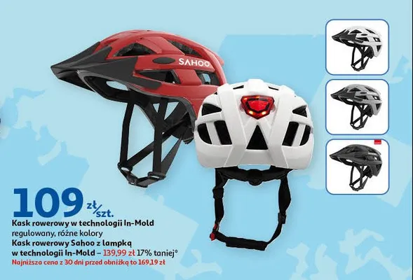Cena produktu r贸偶ni si臋 w zale偶no艣ci od wybranego sklepu. Produkt Kask rowerowy in-mold z lampk膮 Sahoo mo偶esz kupi膰 w promocji ju偶 od 59,9 z艂. Najta艅sza oferta, jak膮 mamy w naszej bazie jest z sieci Biedronka. Kask rowerowy in-mold z lampk膮 Sahoo kosztuje aktualnie 59,9 z艂. Zobacz ofert臋