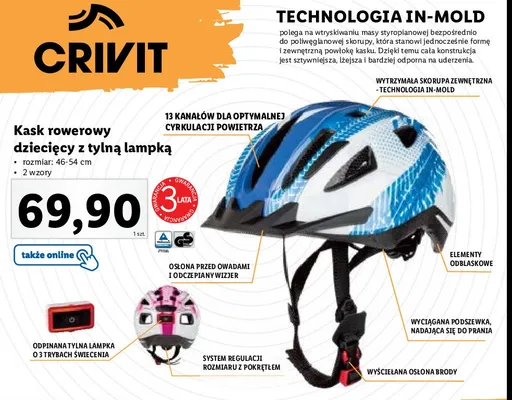 Gdzie mo偶na tanio kupi膰 produkt Kask rowerowy z o艣wietleniem dla dzieci Crivit?
