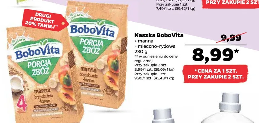 Przegl膮daj oferty promocyjne na produkt Kaszka mleczna manna brzoskwinia banan Bobovita porcja zb贸偶