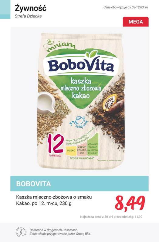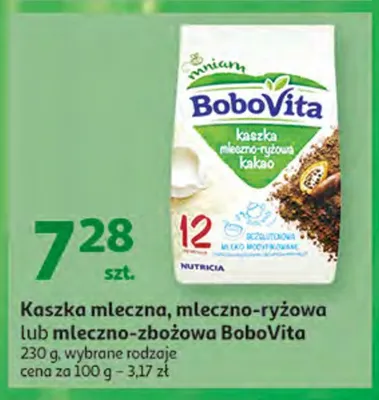 Cena produktu r贸偶ni si臋 w zale偶no艣ci od wybranego sklepu. Produkt Kaszka mleczno-wielozbo偶owa Bobovita mo偶esz kupi膰 w promocji ju偶 od 8,49 z艂. Najta艅sza oferta, jak膮 mamy w naszej bazie jest z sieci Rossmann. Kaszka mleczno-wielozbo偶owa Bobovita kosztuje aktualnie 8,49 z艂. Zobacz ofert臋